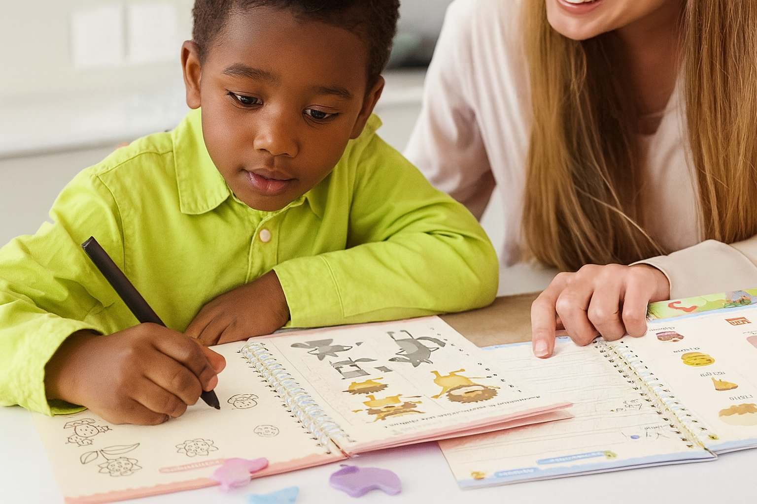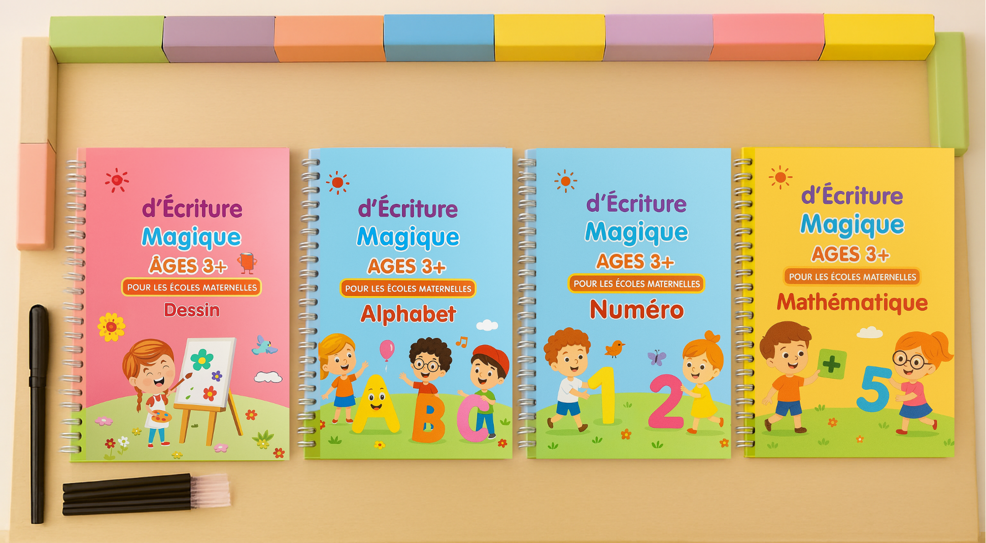 "Excellent produit ! Ma fille de 6 ans passe des heures à refaire les lettres et les chiffres. Les cahiers sont solides, bien pensés et les stylos effaçables sont une super idée. Je recommande à 100 % pour l’apprentissage à la maison."